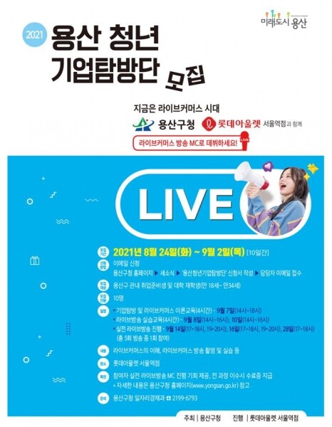 성장현 용산구청장은 ”코로나19로 비대면 경제가 급부상하면서 라이브커머스가 백화점 등 유통업체에서 활발하게 활용되고 있다“며 “구에서도 청년 일자리 사업 추진 시 변화하는 트랜드에 맞춰 프로그램을 다양하게 운영할 것”이라 전했다.