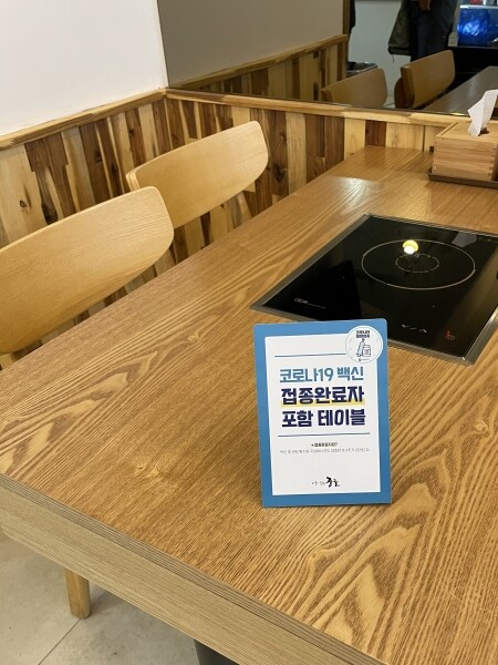 업소에서는 이용객의 백신 접종 완료 여부 확인 후, 안내판을 각 테이블에 배치해 접종완료자가 포함된 자리임을 표시하면 된다.