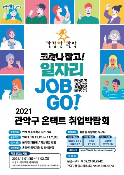 박람회에 참여하고 싶은 기업은 오는 22일까지 관악구 일자리센터 또는 운영사무국으로 신청하면 되며 취업을 희망하는 구민은 오는 29일까지 관악구 온라인 채용관에 접속해 원하는 기업에 입사지원하면 된다.