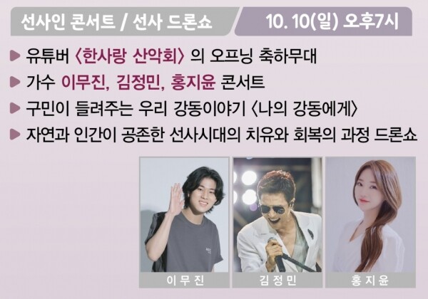 [무한뉴스] 온라인과 빛 전시로 만나는 제26회 강동선사문화축제 마지막을 화려하게 장식할 ‘선사인 콘서트’가 오는 10일 오후 7시에 개최된다.