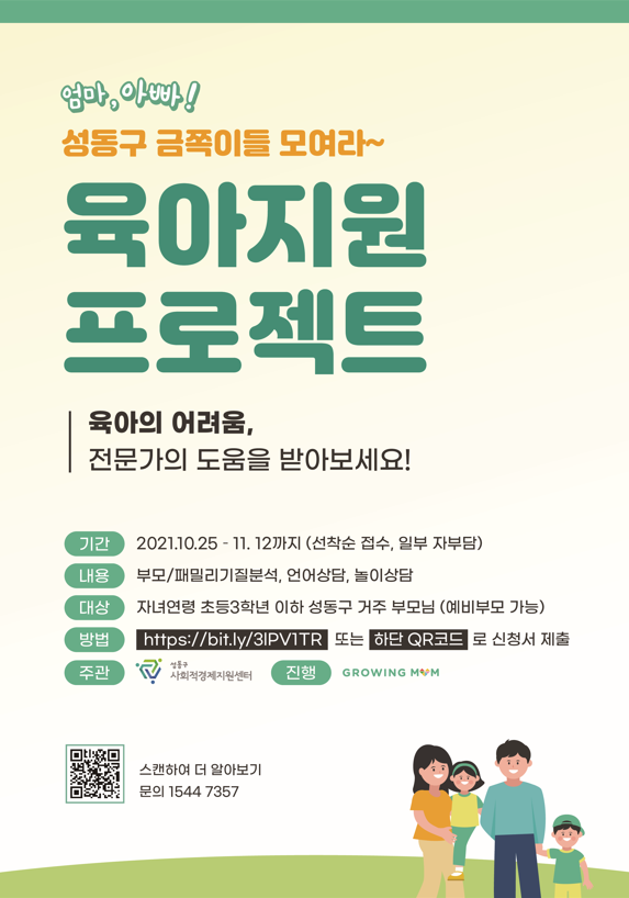 소위 ‘매우 귀하고 소중’하다는 의미의 ‘금쪽’같이 귀한 자녀를 양육하며 느끼는 육아의 어려움을 해결하고자 성동구 사회적경제지원센터에서는 ‘육아지원 프로젝트’를 마련하며 이들을 적극 돕기에 나섰다.